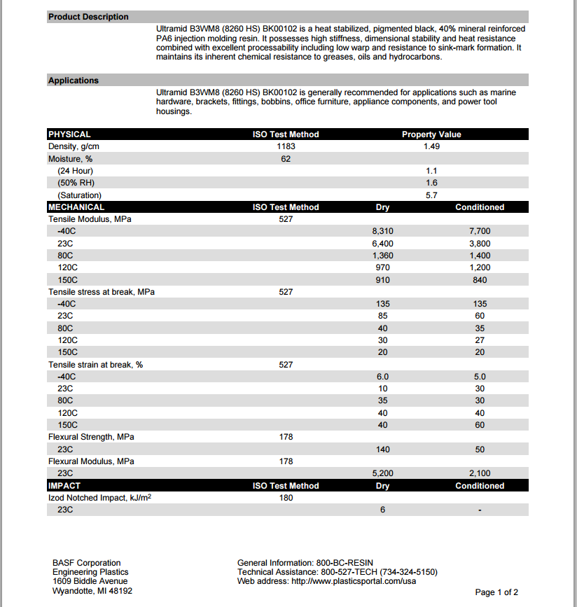Ultramid B3WM8(8260 HS)BK00102是稳定的散热,黑色颜料,40%的矿物增强PA6注塑树脂