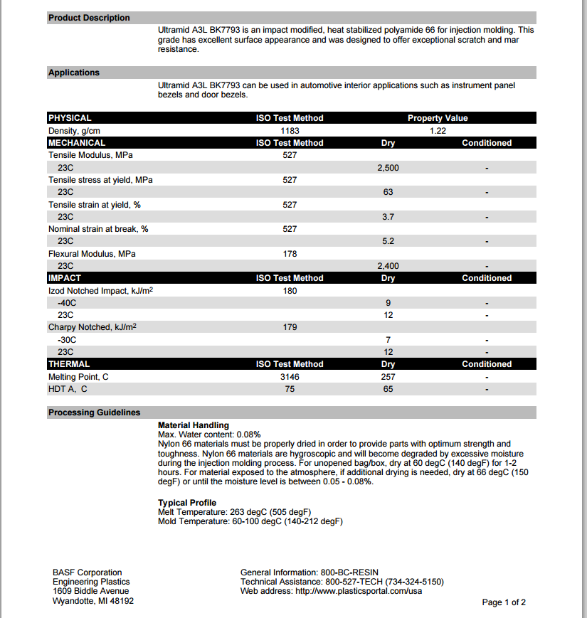Ultramid A3L BK7793是修改的影响,热稳定聚酰胺66注塑成型。