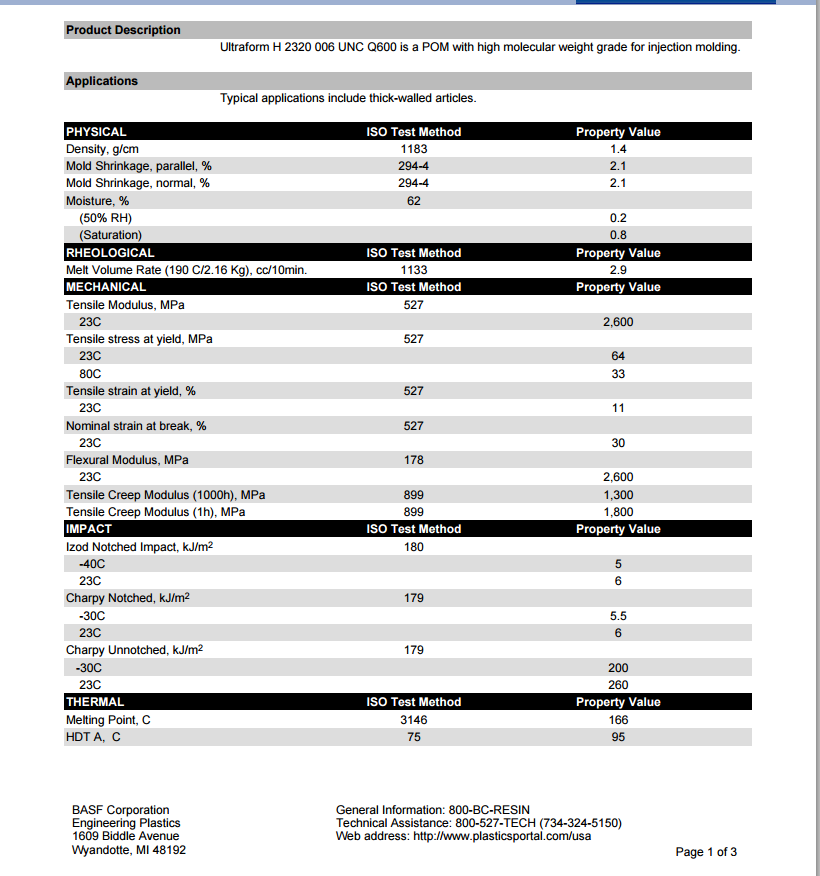 ULTRAFORM H2320 006 UNC Q600是注塑成型POM