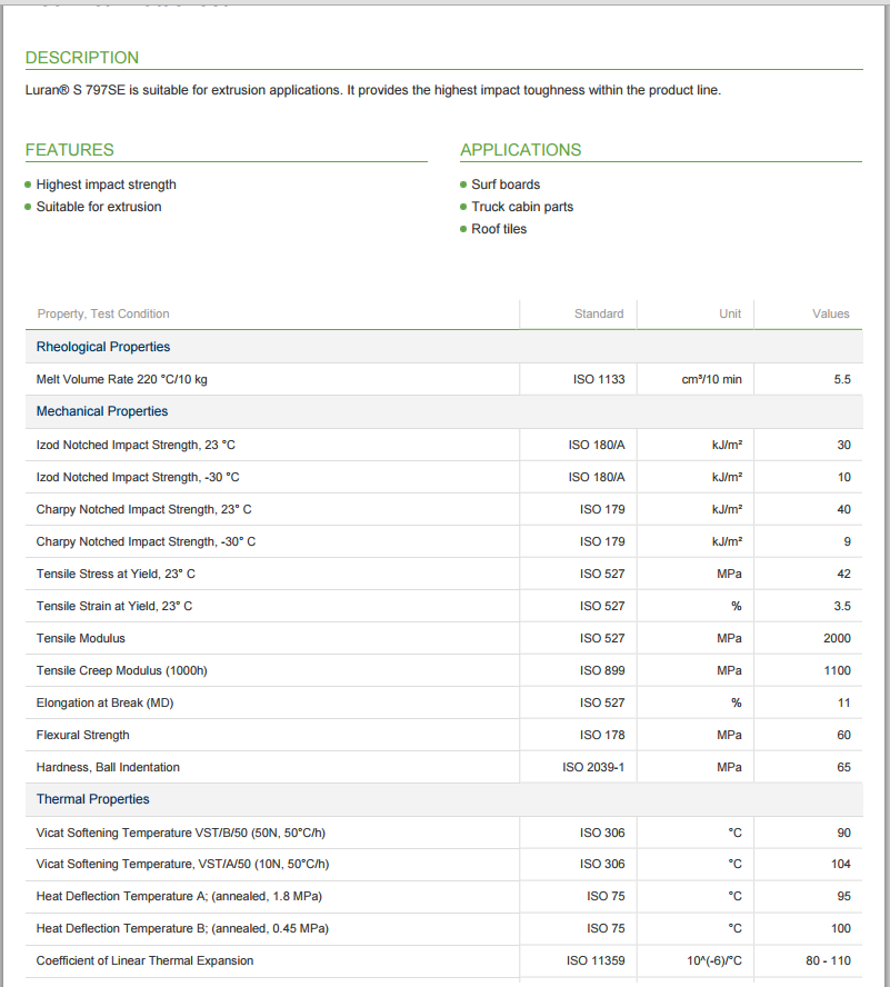 LURAN S 797SE 最高冲击强度 适合于挤出