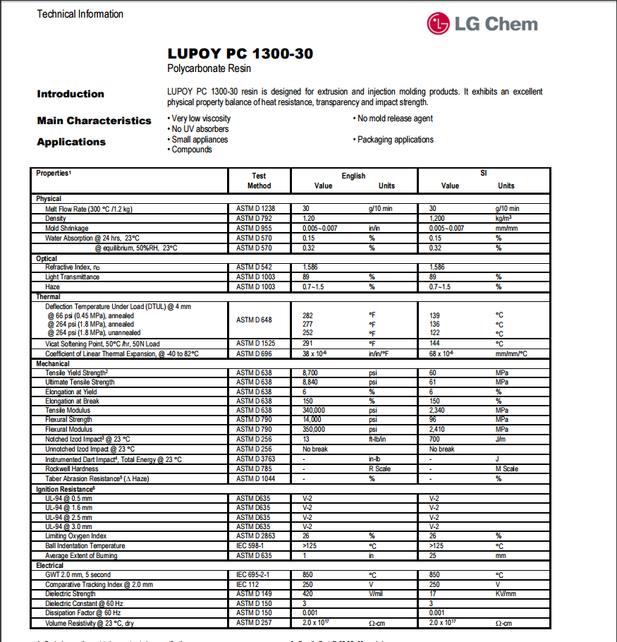 LUPOY PC 1300-30 良好的脱模性 低粘度 抗紫外线