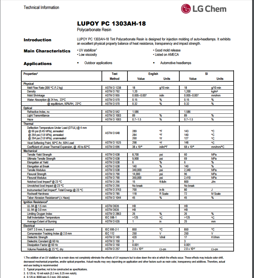 LUPOY PC 1303AH-18 良好的脱模性 低粘度 抗紫外线 耐气候