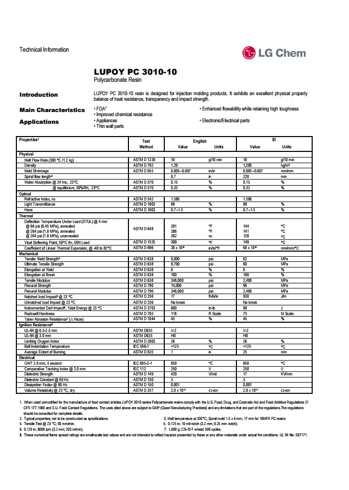 LUPOY PC 3010-10 中等粘度 电子,电气,电器部件 薄壁部件
