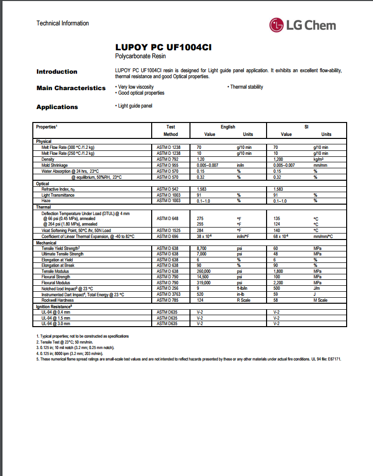 LUPOY PC UF1004CI 良好的流动性 热稳定性 良好的光稳定性 专业做导光管板