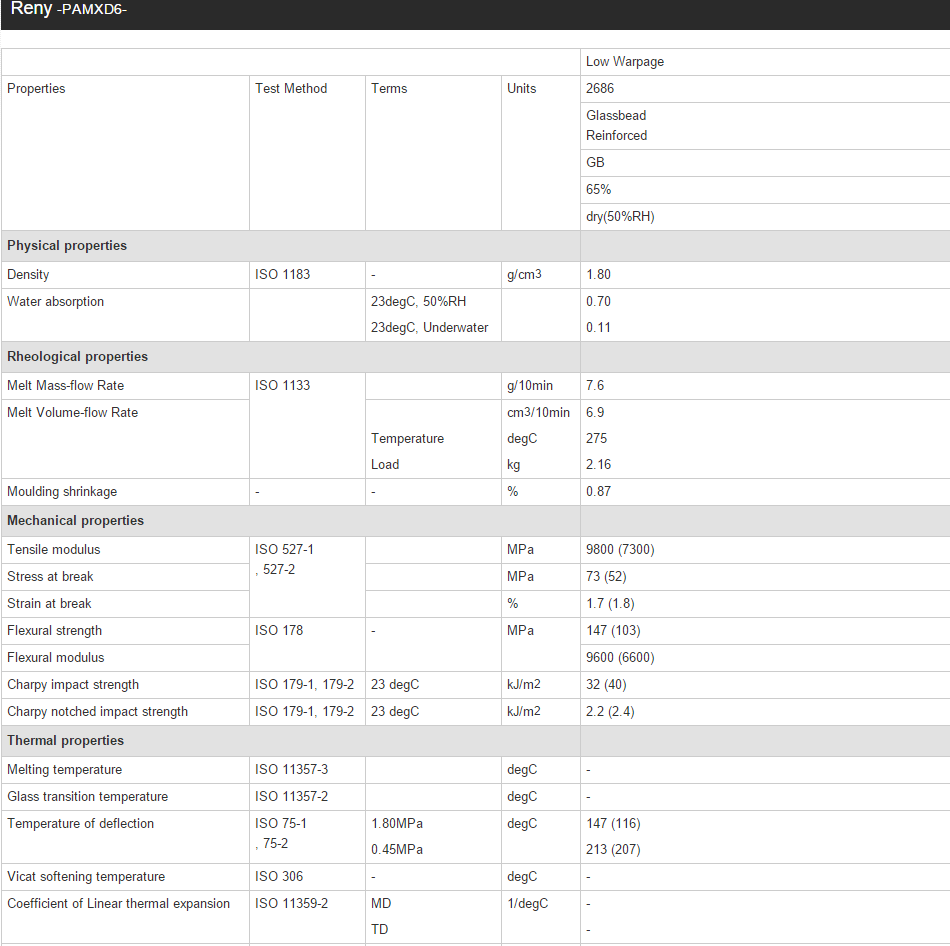 Reny PAMXD6 2686 65%玻璃珠强化 低翘曲