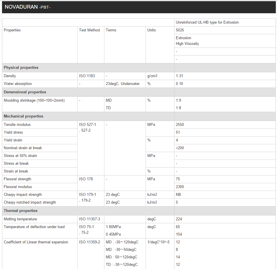 NOVADURAN®PBT (聚对苯二甲酸丁二醇酯)