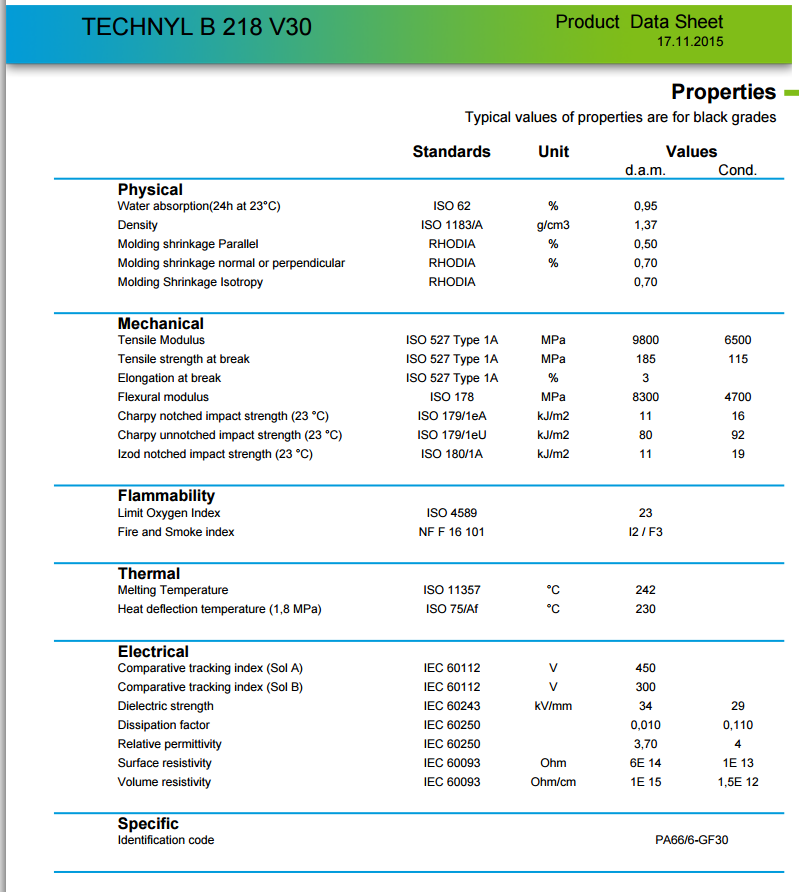 TECHNYL B 218 V30 30%玻璃纤维,热稳定,注塑级PA66