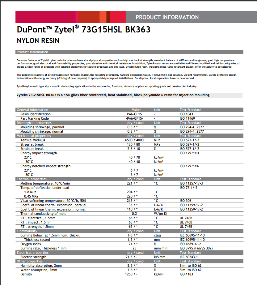 Zytel PA6 73G15HSL BK363 15%玻璃增强,热稳定聚酰胺6