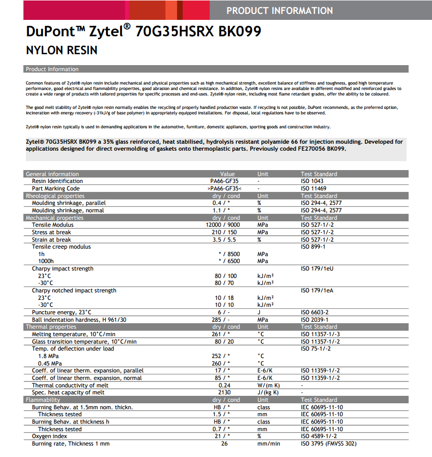 Zytel PA66 70G35HSLX BK357 35% 玻纤增强, 热稳定, 尼龙66