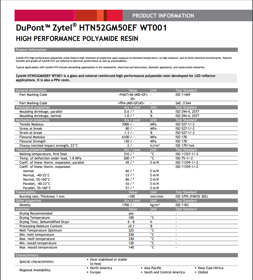 Zytel PPA HTN52GM50EF WT001 50% 玻纤/矿物增强, 高温尼龙, 高性能聚酰胺