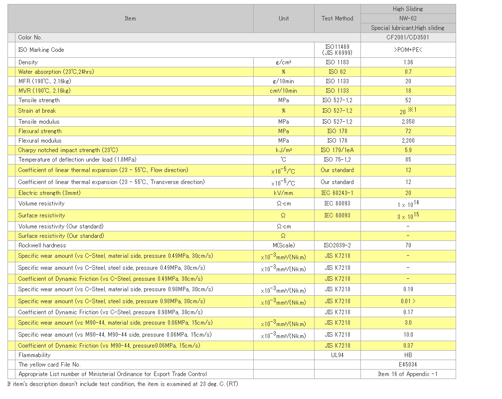 DURACON POM NW-02 CF2001/CD3501 特殊润滑剂, 高性能高滑动性