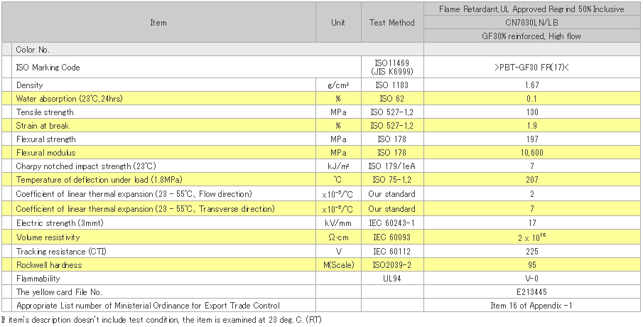 DURANEX PBT CN7030LN/LB EF2001/ED3002 GF30%增强, 高流動 阻燃・标准・经UL认定可以使用50%回收料