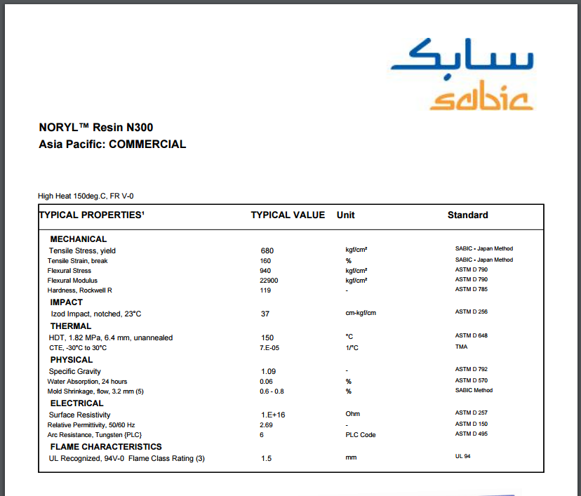 Noryl PPO SE1V PPE/HIPS FR-V1 90℃