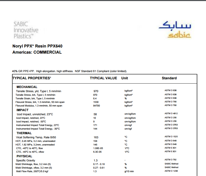 Noryl PPX PPX640 PPE+PP 40%GF增强 高刚度
