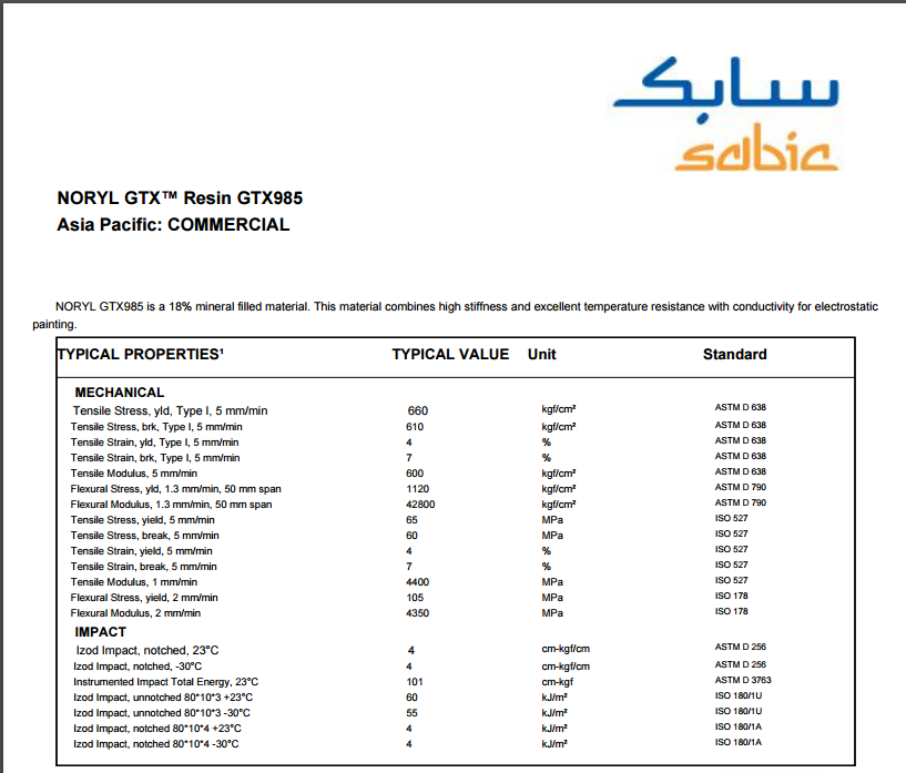 Noryl PPO GTX985 高流动性 / 高耐热性 未增强型