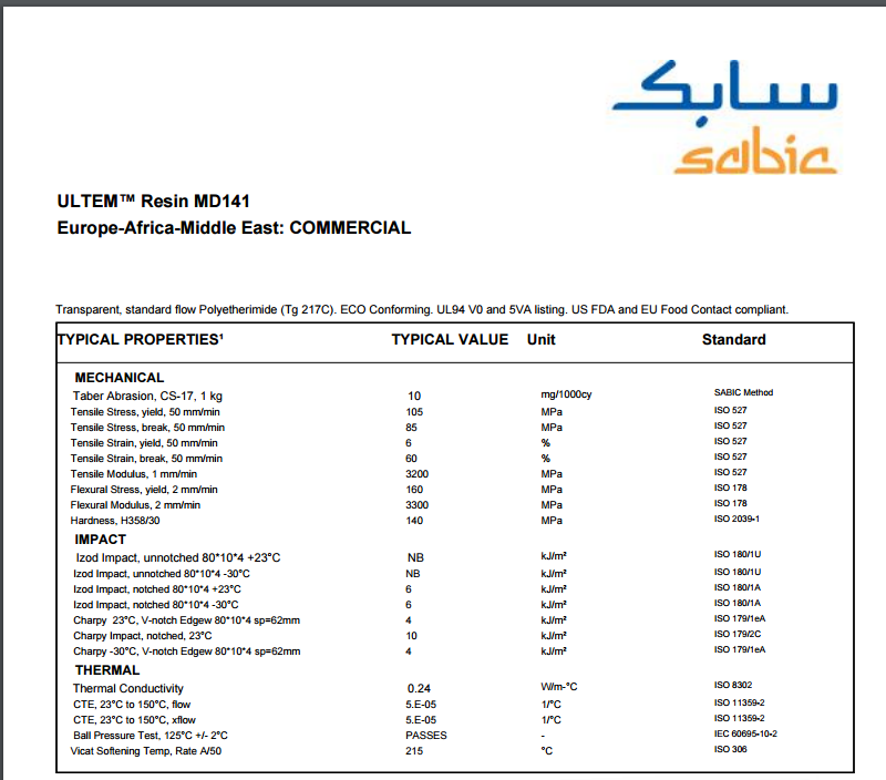 Ultem PEI MD141 特殊用途PEI