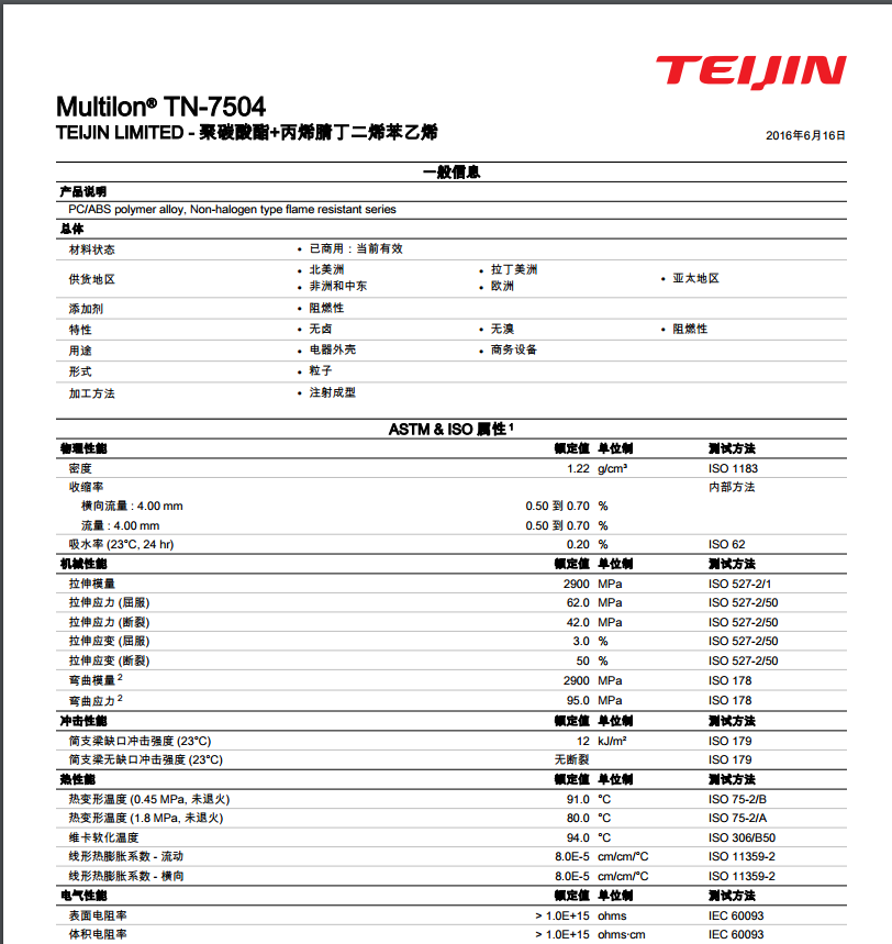 Multilon PC/ABS TN-7504 无卤; 无溴; 阻燃性