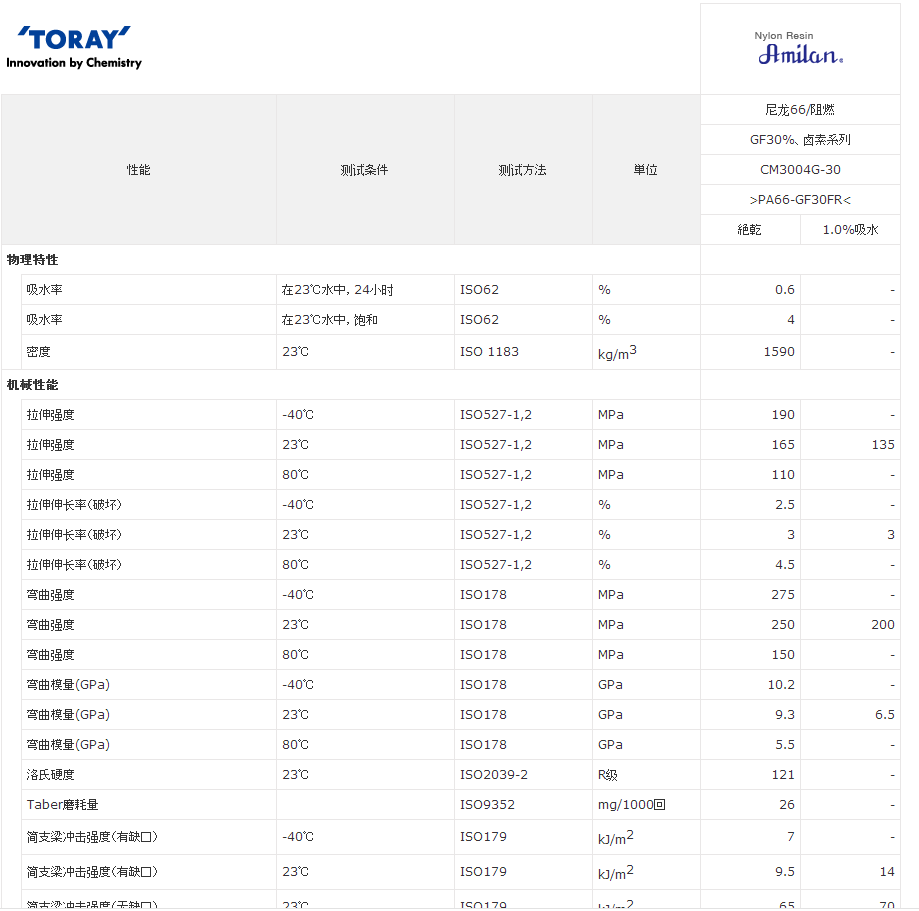 Amilan PA66 CM3004G-30 尼龙66/阻燃 GF30%、卤素系列