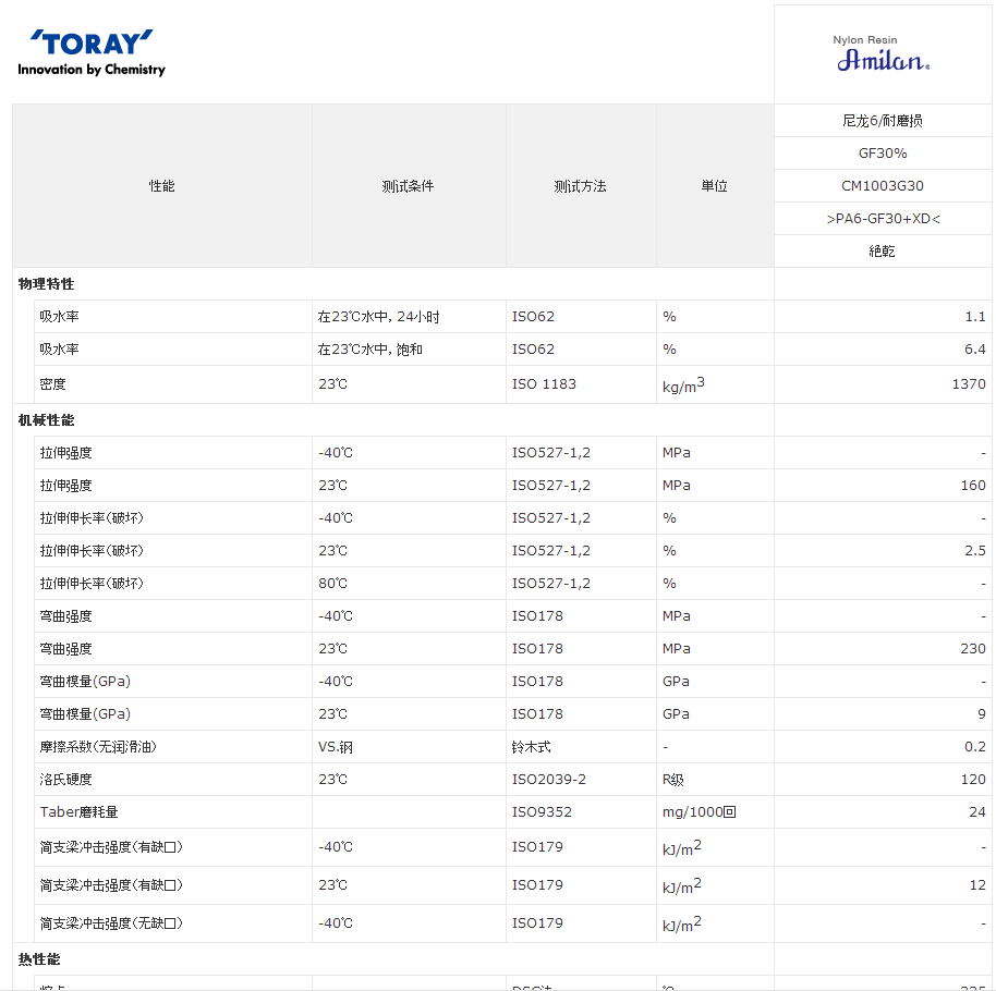 Amilan PA6 CM1003G30 尼龙6/耐磨损 GF30%